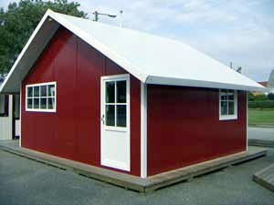 Die Seitenwände werden an Boden und Decke in U-Profile aus Aluminium eingesetzt. Selbstschneidende Schrauben verbinden das Dach mit den Seitenwänden. Abdichtung durch gummibelegte Unterleg-Scheiben.