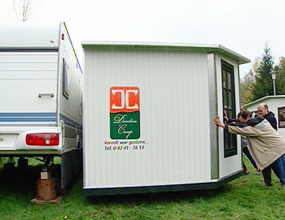 Die Seitenwände werden an Boden und Decke in U-Profile aus Aluminium eingesetzt. Selbstschneidende Schrauben verbinden das Dach mit den Seitenwänden. Abdichtung durch gummibelegte Unterleg-Scheiben.
